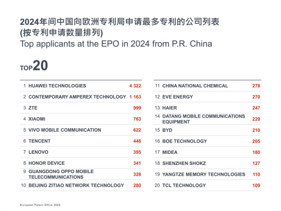 This demonstrates Chinese enterprises’ strength of innovation and their competitive edge within the European patent landscape.